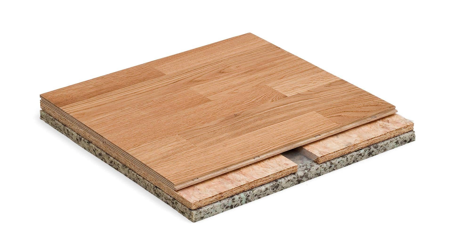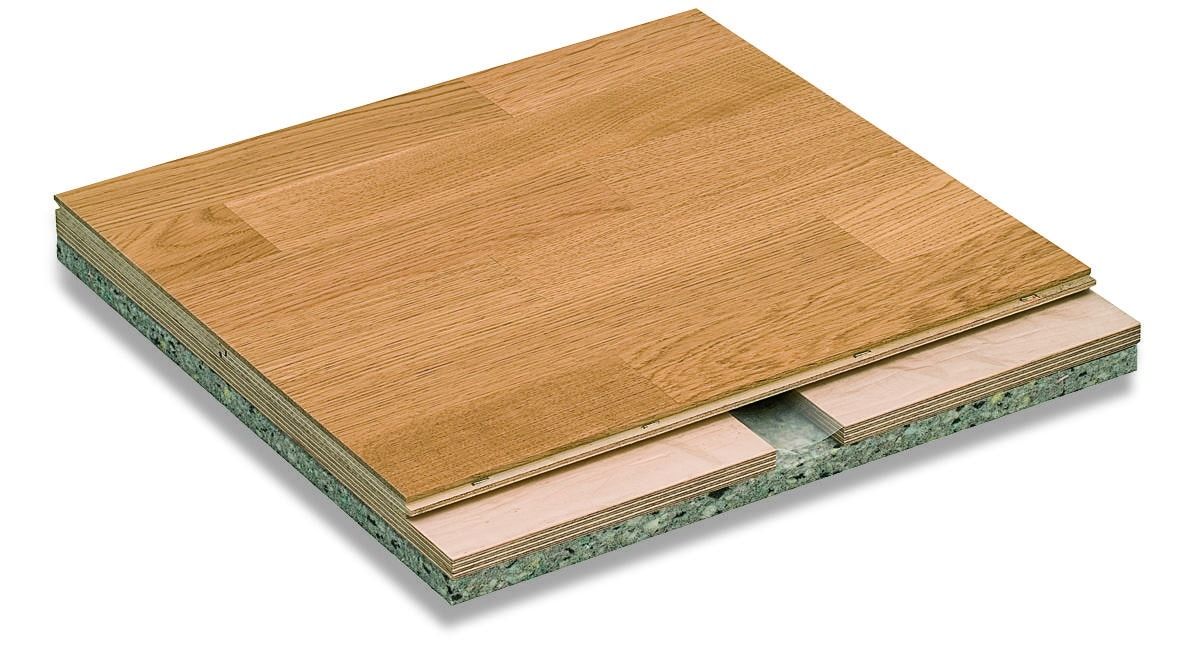 Joustava parkettipintainen sandwich-rakenne, rakennekorkeus 34,6 mm