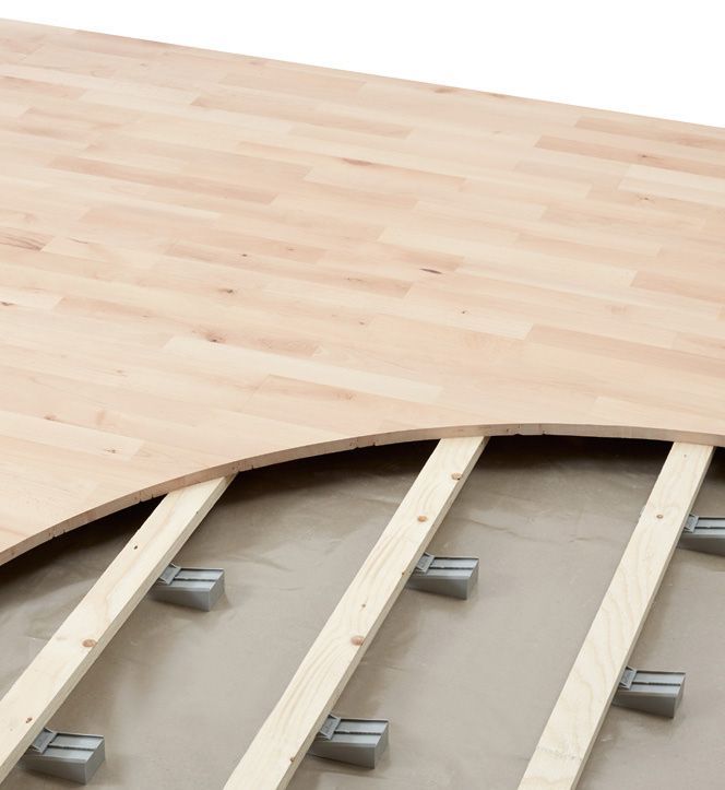 Massiivipuupintainen joustolattia, rakennekorkeus 82 – 109 mm